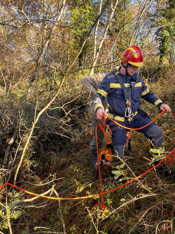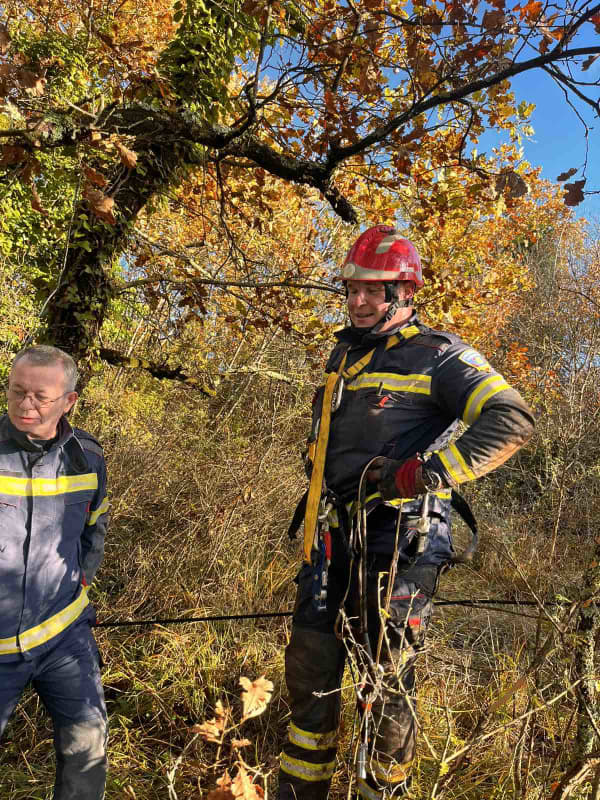 (FOTO) BRAVO ZA VATROGASCE POREČA! Živog i zdravog izvukli psa iz duboke jame u koju je pao
