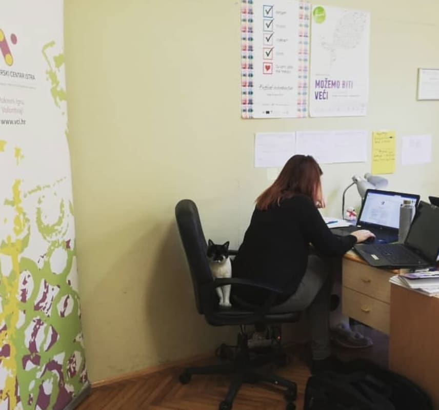 Ide tamo gdje su ljudi, voli se ugrijati i ugurati se u svoja posebna mjesta, ponekad i na stolicu nekome iza leđa. A često je to i knjižnica Rojca koja joj se posebno sviđa.