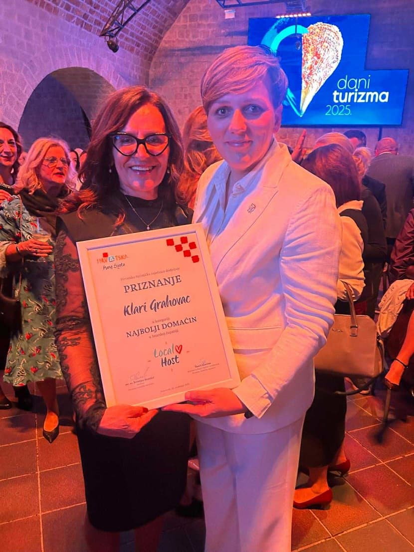 - Izrazito sam sretna i ponosna sto sam na Danima hrvatskog turizma u Dubrovniku, najprestižnijem turističkom događaju u Hrvatskoj, koji je okupio preko 1300 sudionika, dobila nagradu Vaš domaćin godine - Local host za Istarsku županiju.