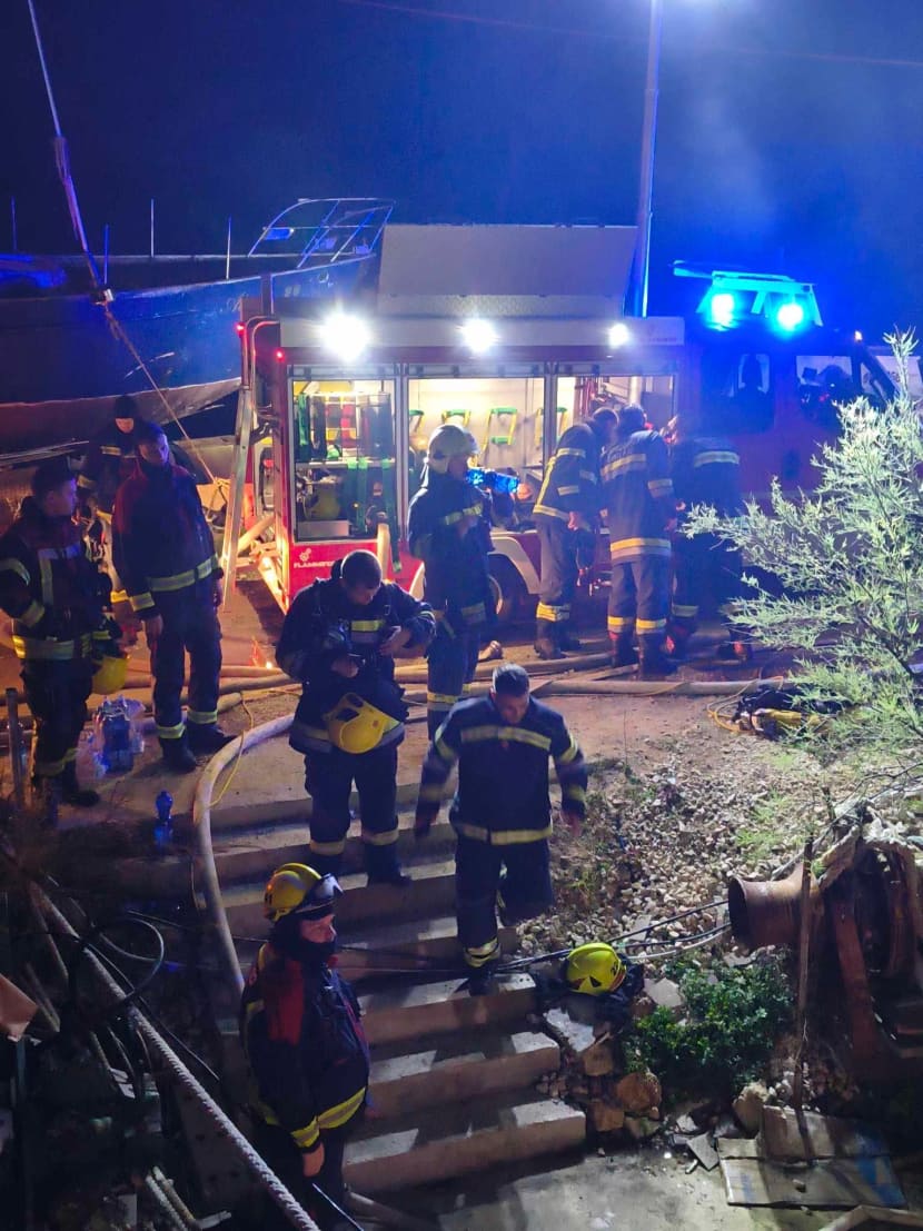 Pripadnici JVP Dugi rat sa gašenjem požara započeli su sinoć, a nedugo nakon dojave požar je lokaliziran u dijelu strojarnice, u potpalublju. Iako je brod zahvaćen požarom tijekom boravka na vezu u luci Bajnice, brodovi vezani u neposrednoj blizini opožarenog broda nisu oštećeni.