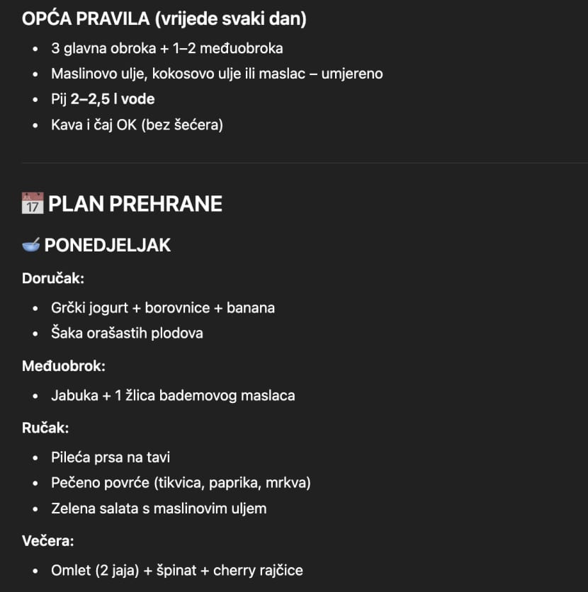 Što god odlučite, alat vam zauzvrat izbaci jelovnik po danima, recepte i raspored treninga; drugi alat to poveže s vašim satom i doda broj koraka i podsjetnik da pijete vodu. U pozadini se događa isto što i u profesionalnom sportu, gdje se AI već koristi za praćenje performansi, analizu pokreta i prevenciju ozljeda.