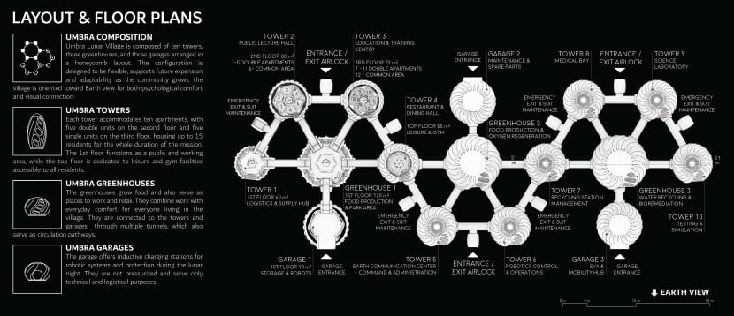 - Što se tiče samog razmještaja nastambi osmišljeno je deset toranja, tri staklenika u kojima bi se uzgajala hrana te tri garaže.