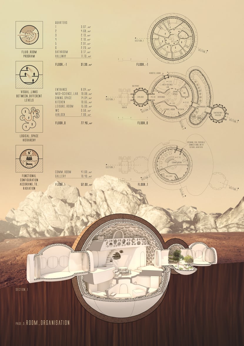 - Baza na Marsu projektirana je za šest istraživača i osmišljena tako da nastambe mogu zaštiti ljude od radijacije, velikih temperaturnih oscilacija, pješčanih oluja i udara meteora te niske gravitacije. Uz sve to gradnja mora moći trpjeti unutarnji pritisak koji je veći nego vani pa su nastambe koje sam dizajnirala kružnog oblika da mogu izdržati pritisak iznutra, baš poput balona.