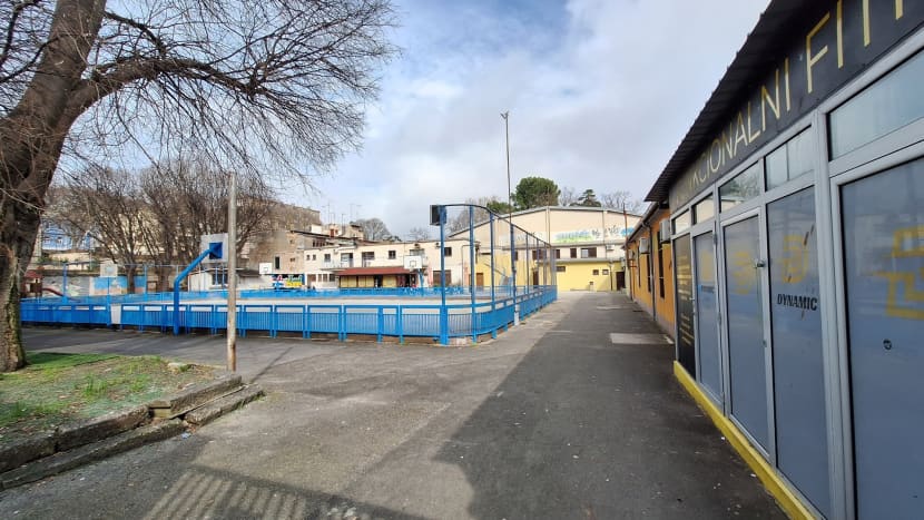 Teren na otvorenom, na kojemu su igralište za koturaljkanje i košarku smješten je na površini od 1.600 kvadrata.