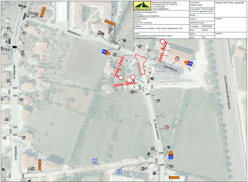 Od danas, 19. siječnja, Grad Pula – Pola započinje s radovima sanacije kolnika na raskrižju Japodske ulice i Ulice Bože Gumpca.