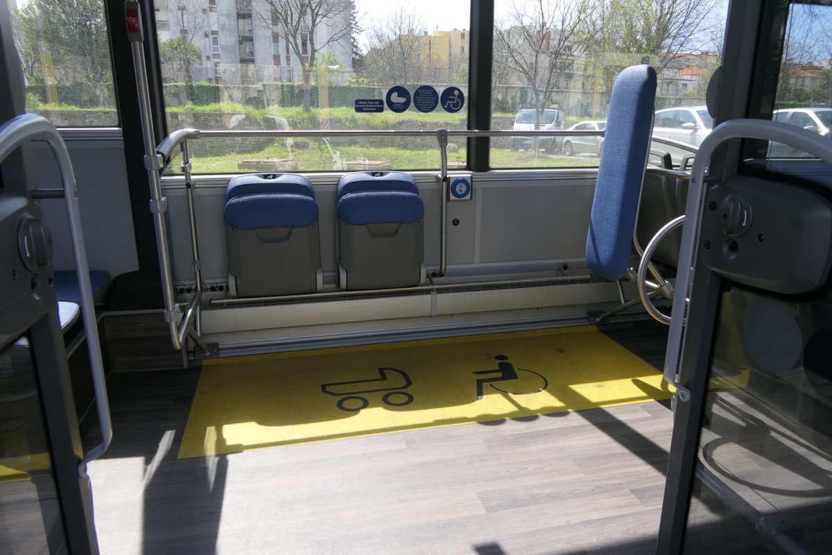 Ukupni kapacitet autobusa je 75 putnika, s 35 sjedala i 40 stajaćih mjesta, a tu su i prostor za smještaj invalidskih kolica i električna rampa za pristup osoba s invaliditetom. “Jako sam zadovoljan”, rekao nam je bivši dugogodišnji predsjednik Društva tjelesnih invalida južne Istre Mladen Pucarić, i naglasio da će biti potrebno jedno vrijeme privikavanja obzirom da rampa za pristup invalidskih kolica nije mehanička već električna.
