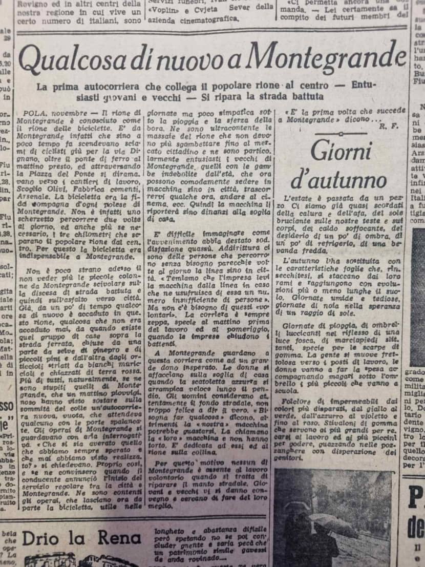 Prva autobusna linija koja povezuje ovaj popularni kvart s centrom – Oduševljenje među mladima i starima – Popravlja se makadamska cesta", najavio je tada "La voce del popolo".