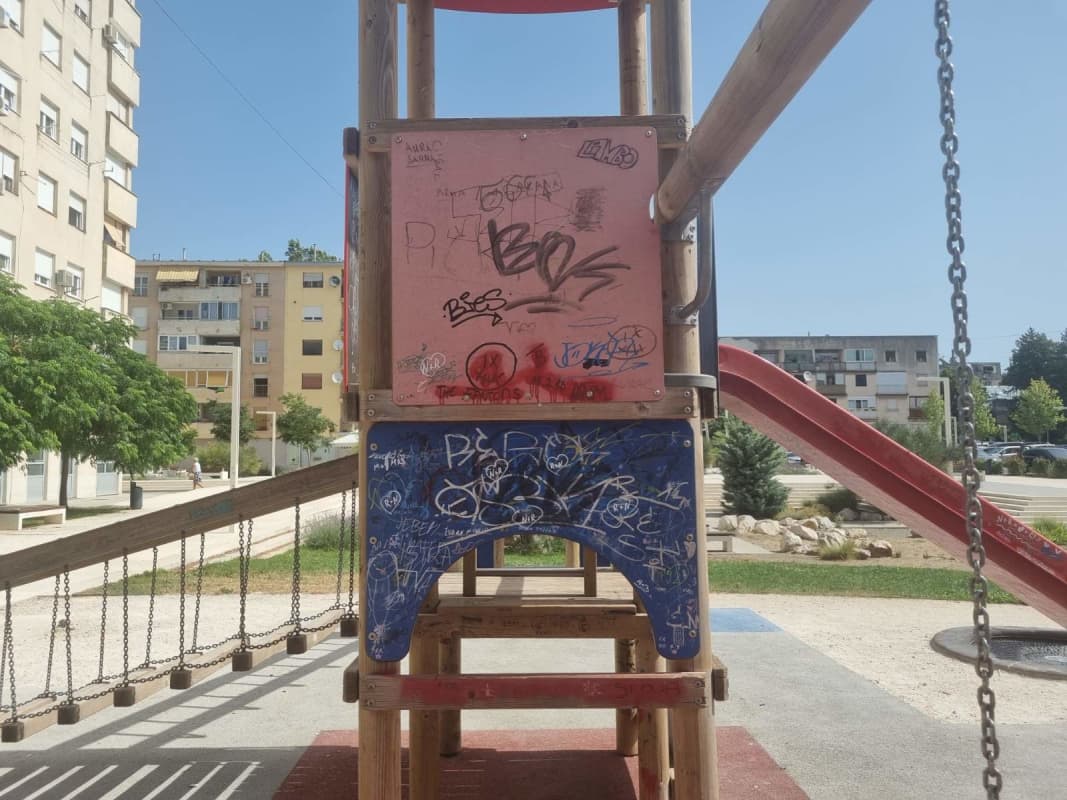 Svaki dio trga je išaran – doslovno ne postoji dio na kojemu se netko nije poigrao markerima. I - da ne bi došlo do zabune - ne radi se o grafitima, već o običnim škrabotinama, koje se nalaze čak i na stupovima javne rasvjete!