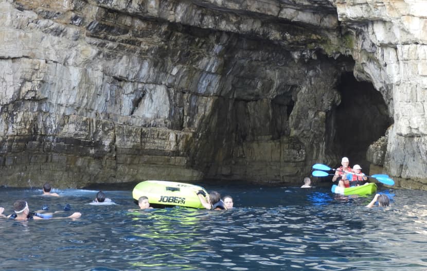 Stijene su prebukirane s turistima, na samom moru mnoštvo plovila, od čega najviše grupa turista s kajacima koji obilaze lokaciju, daske za veslanje, unajmljeni čamci, glisirajući jetovi koji se opasno približavaju obali, te kupači koji se izmiču nadolazećim plovilima - sve u svemu jedan veliki kaos!