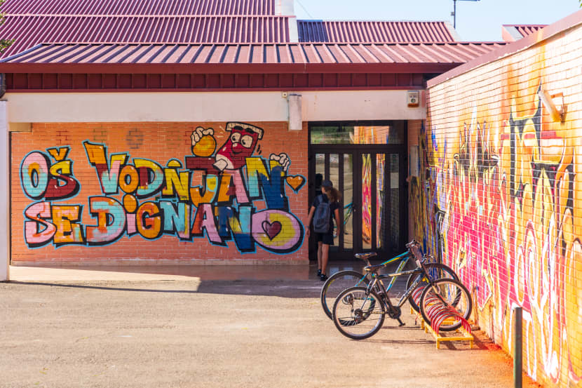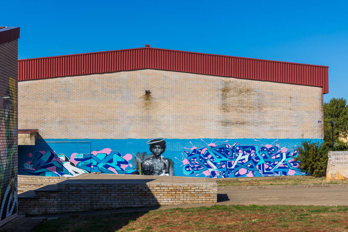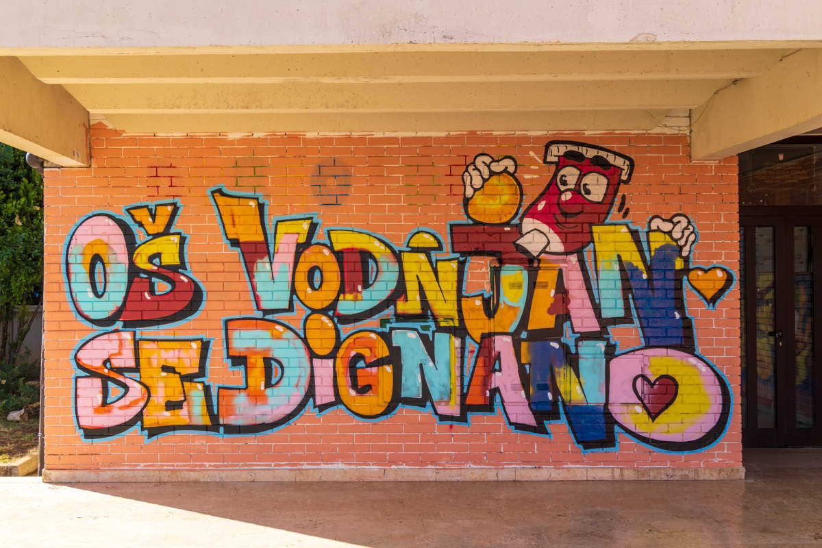 Na Osnovnoj školi Vodnjan osvanuli su preko vikenda novi grafiti ili bolje rečeno murali. "Glavni krivac", odnosno organizator je Eric Derocchi iz Vodnjana koji se javio na natječaj objavljen na stranicama Grada Vodnjana.