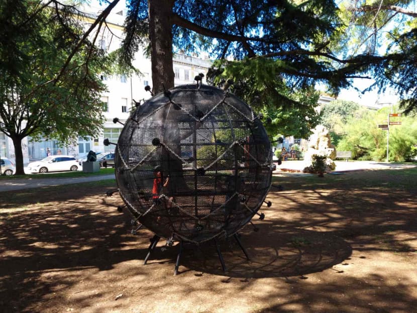 U parku preko puta porezne svoje je mjesto pronašla i jedna posve neobična skulptura. Nekima, kako smo čuli, nalikuje na nešto što se spustilo iz svemira, poput svemirskog broda, dok je neke izgledom podsjećala na virus. Možda je to korona, upitali su se?