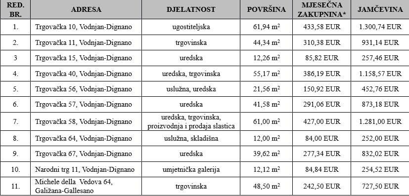 Radi se o natječaju za zakup devet poslovnih prostora u Trgovačkoj ulici, jednom na Narodnom trgu u Vodnjanu te prostoru u centru Galižane.