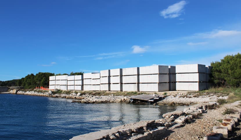 Naime, tada nam je Končar kazao da za nasipavanje 20-ak metara mora ispred kamenoloma, planiraju postaviti 800 velikih betonskih blokova, kako bi se došlo do željene dubine budući da je more ispred obale jako plitko te je u sadašnjem stanju nemoguće pristati obali s većim brodovima.