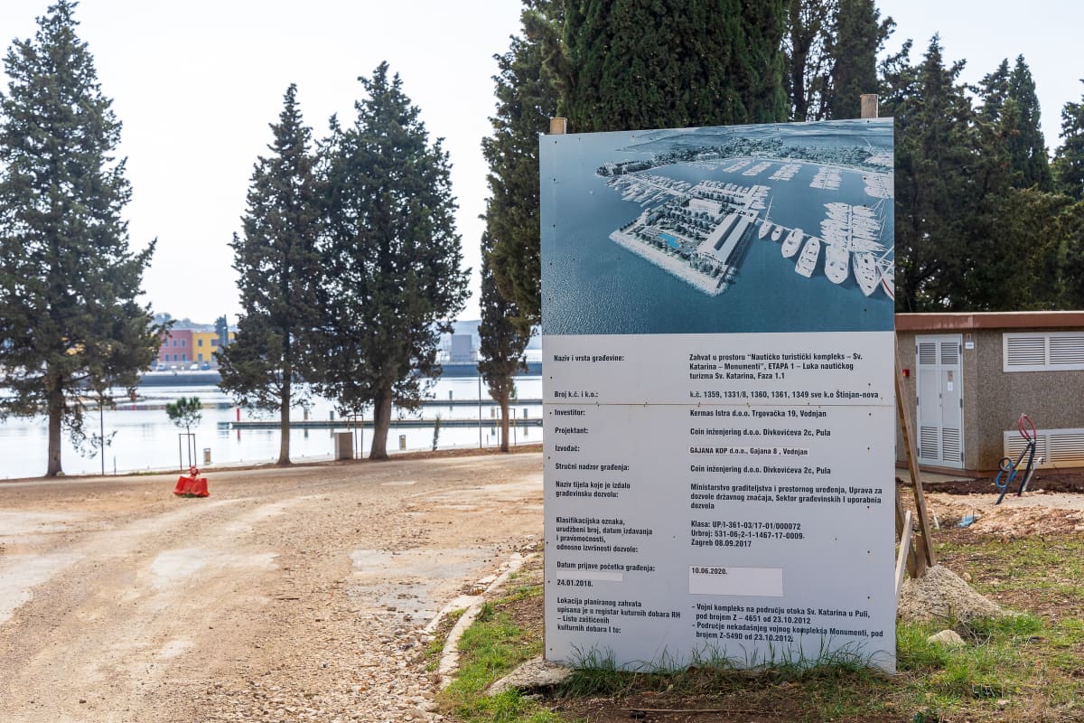 Nautičko-turistički kompleks Katarina-Monumenti proteže se na 46 hektara, a projekt osim marine, koja bi u konačnici trebala imati 400 vezova u moru i čak 1.100 suhih, obuhvaća i izgradnju podzemne garaže i luksuznog hotela.
