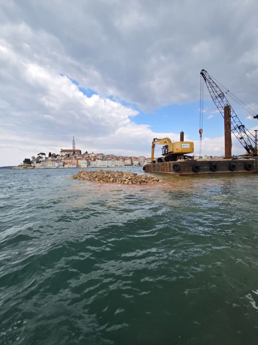 Također, važno je istaknuti i da se posao odvija prema predviđenom hodogramu, kao i da će ova faza radova biti zgotovljena unutar desetak dana, naravno i ovisno o meteorološkim prilikama. Što se, konkretno tiče količine materijala općeg kamenog nasipa, u ovom je trenutku postavljeno oko pedeset posto volumena. Po okončanju ove faze slijedi nanošenje novog materijala na kameni nasip koji će biti temelj za kasnije slaganje betonskih blokova, kaže ravnatelj Lučke uprave Rovinj, koji nam je potvrdio i da se tijekom ljetnih mjeseci i sezone posao na gradnji lukobrane neće zaustaviti, kako bi do kraja godine i prema najavama bila većim dijelom dovršena gradnja Sjevernog lukobrana.