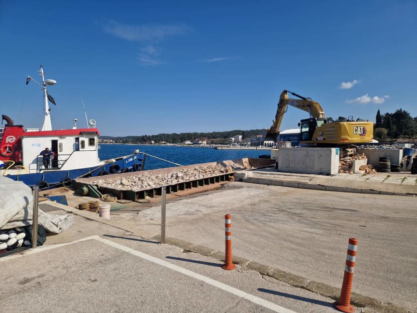 - Radovi na lukobranu počeli su prije tri mjeseca. Cijela izgradnja do sada se odvijala ispod površine mora tako da, unatoč velikom intenzitetu radova, nisu bili vidljivi i s obale. Unazad nekoliko dana došlo se do razine minus dva metra ispod površine mora, tako da se sada polako ulazi u sljedeću fazu izgradnje općeg kamenog nasipa. Uz pomoć velike maone s dizalicom, koja nanosi materijal, trenutno se radi na oblikovanju nasipa prema tlocrtu lukobrana. Privremeno će se povezati kamenim materijalom i blokovima nasip s otokom sveta Katarina te će se oblikovanje nasipa odvijati uz pomoć mehanizacije s njega.