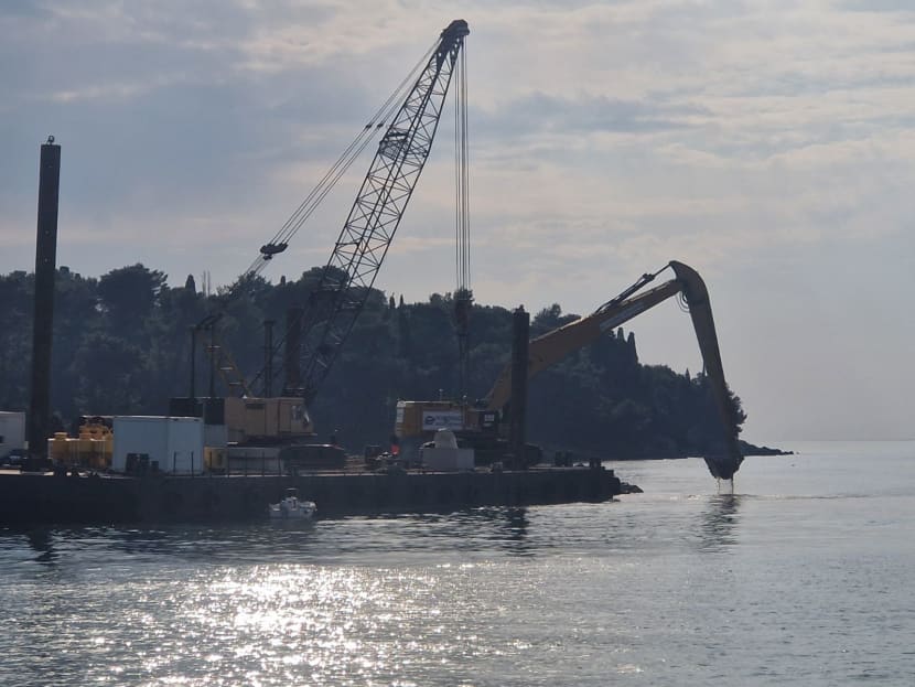 Uz ukrcaj materijala, koji se svakodnevno s brodovima prevozi iz luke Valdibora na gradilište i otok Katarinu, kao i ranije postavljene morske oznake/ bove, pažnju privlači manevriranje velike maone s dizalicom koja se unazad nekoliko dana, u punoj građevinskoj akciji, može vidjeti ispred otoka Sveta Katarina.