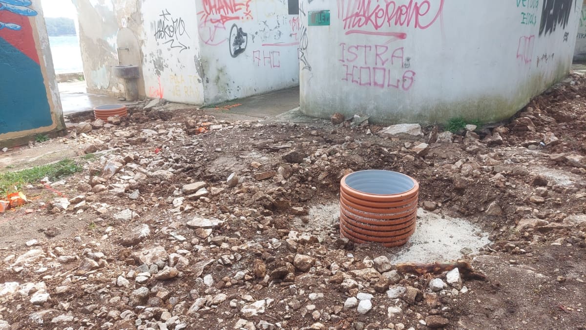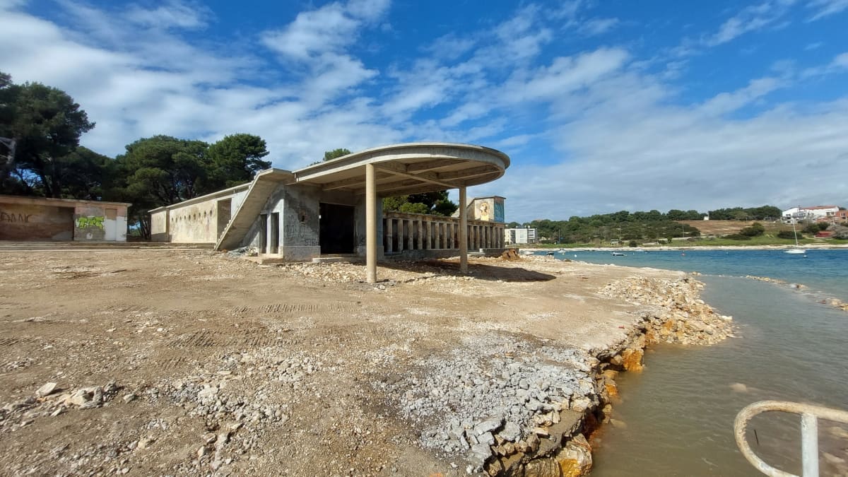 Kao što smo pisali na Istra24, radovi su u ovoj fazi fokusirani na obalni dio kako bi bili gotovi za sezonu koja je pred nama. Stari beton je u potpunosti skinut, te se trenutačno radi na obalnom zidu.
