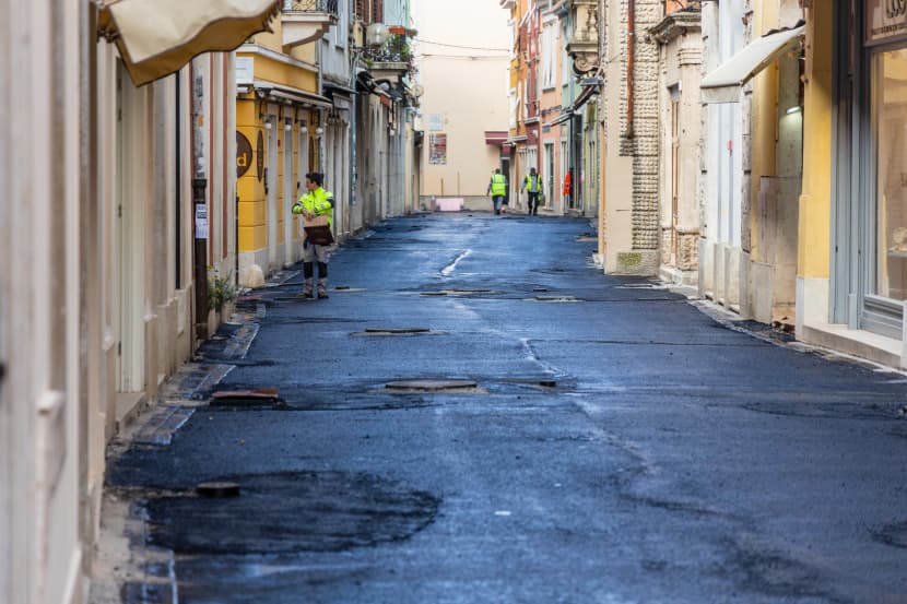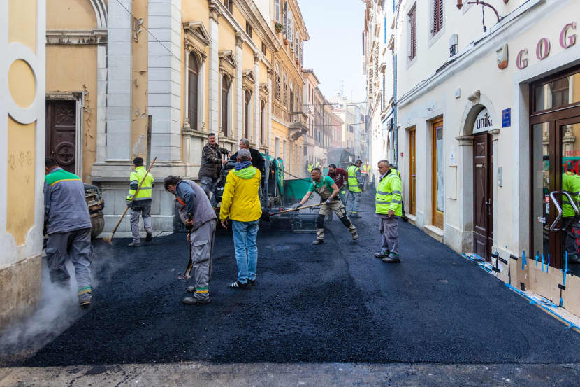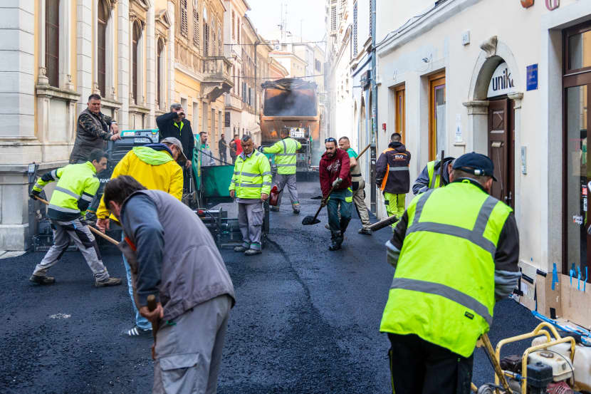 Nakon što je crnim asfaltom uspješno prekrivena prva polovica ulice Sergijevaca, ona bliže Slavoluku, s radovima se danas nastavilo u ostatku ulice, od crkve sv. Marije pa sve do Foruma.