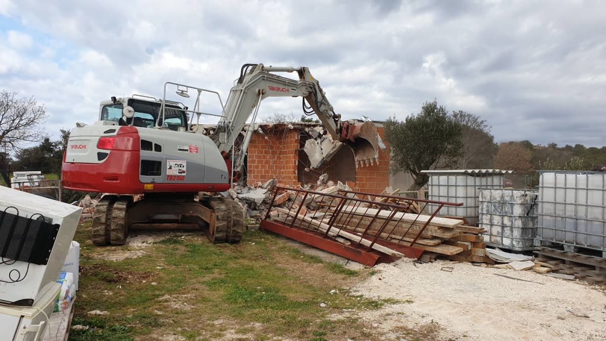 U sklopu akcije rušenja bespravnih objekata u Istri, koju od jučer provodi Državni inspektorat, danas su na redu za rušenje objekti izgrađeni oko adrese Put od fortica kod Šikića, na granici Pule i Općine Ližnjan.