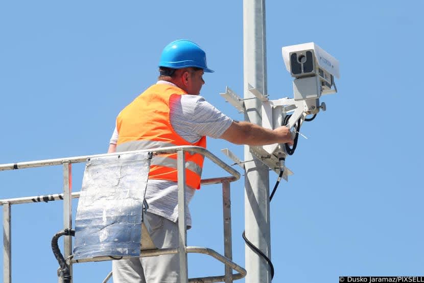 Policijski službenici, kako su nam jutros rekli na licu mjesta, obavljaju redovni atest te kamere. Jedan je službenik ispod kamere na tlu na računalu, kako je rekao, odmjeravao njen rad.