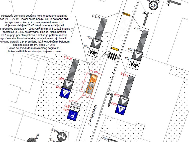 Radovi obuhvaćaju asfaltiranje dijela zelene površine radi formiranja parkirnog mjesta za osobe s tjelesnim invaliditetom