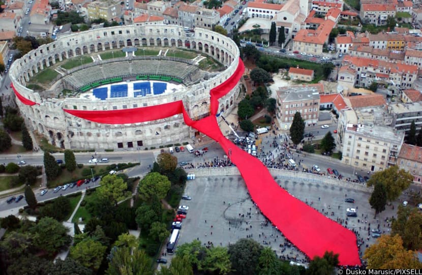 Fascinatni prizori Arene obišli su tada cijeli svijet, a sama umjetnička instalacija autora Marijana Bušića, ravnatelja Udruge Academia Cravatica, ušla je u Guinessovu knjigu rekorda jer je ta kravata, do sada, najveća i najduža na svijetu.
