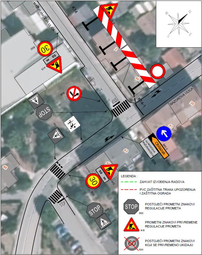 Grad Pula - Pola odobrio je izvođaču radova STRUCTURA d.o.o. uvođenje privremene regulacije prometa na dijelu Nazorove ulice od raskrižja s Kranjčevićevom do raskrižja s Mažuranićevom ulicom, u Puli, za potrebe izvođenja građevinskih radova betoniranja u sklopu izgradnje zgrade na k.č. br. 6097/9, k.o. Pula, temeljem građevinske dozvole. Promet će se odvijati obilazno putem Radićeve i Mažuranićeve ulice.