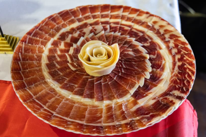 Osim cijenjenih mirisnih španjolskih "feta" sušenog mesa, ove su godine po prvi put u Tinjan stigli i proizvođači iz možda najpoznatijeg mjesta u svijetu kada su šunke u pitanju - iz talijanske Parme.