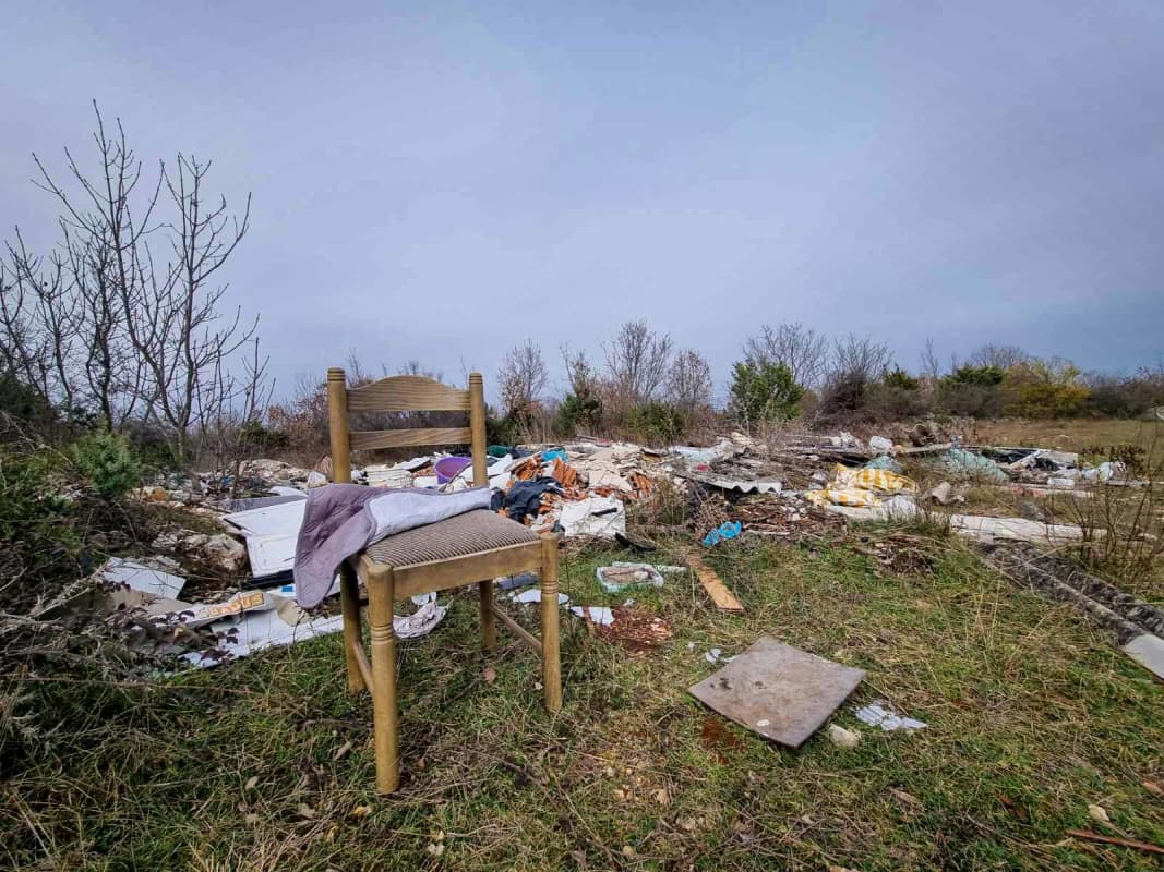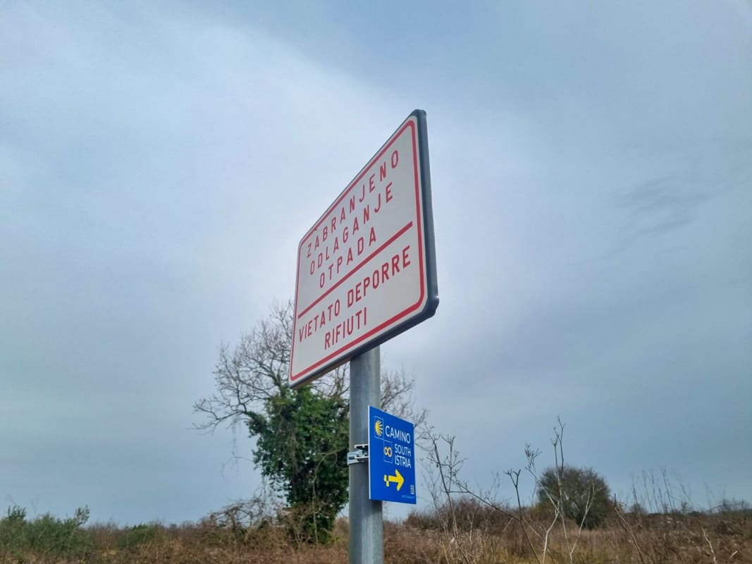 U blizini istarskog Ipsilona, južno od štancije Guran, gdje se staza Camina Istriano približava Vodnjanu na svega nekoliko stotina metara, uz stazu se, naime, nalazi nekoliko divljih deponija pa pogled, preko novopostavljenih oznaka hodočasničke rute pada na odbačeni namještaj, razbijene televizore, gomile građevinskog otpada i, našim amaterskim okom reklo bi se - azbestne ploče.