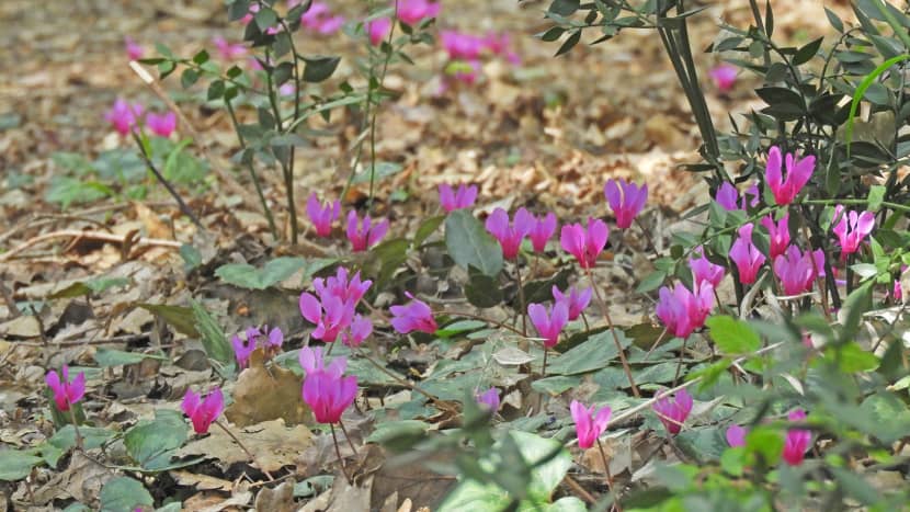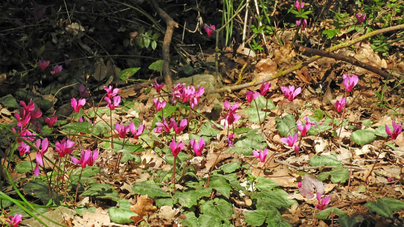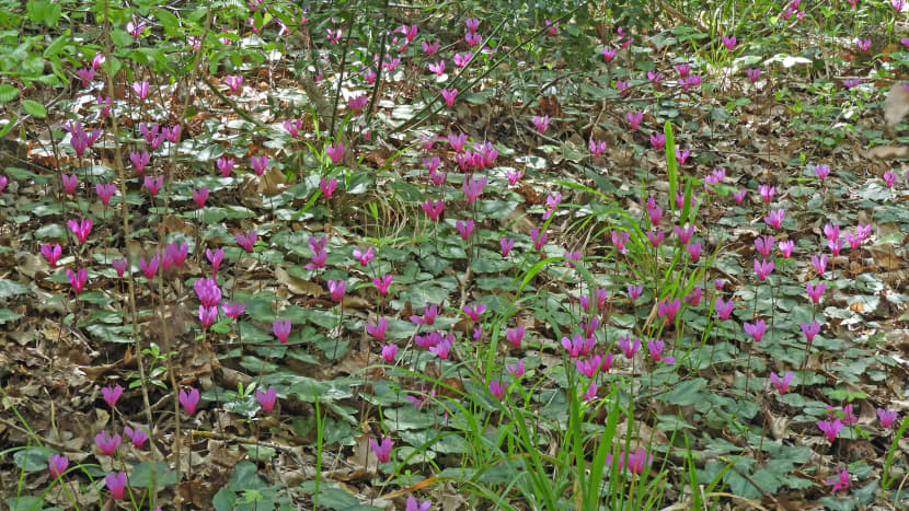 Zahvaljujući obilnim kišama koje su obilježile proteklo razdoblje, ciklame su se snažno proširile, pa su brojne staze i puteljci kroz šumu ukrašeni ovim nježnim, ali upečatljivim cvijetom.