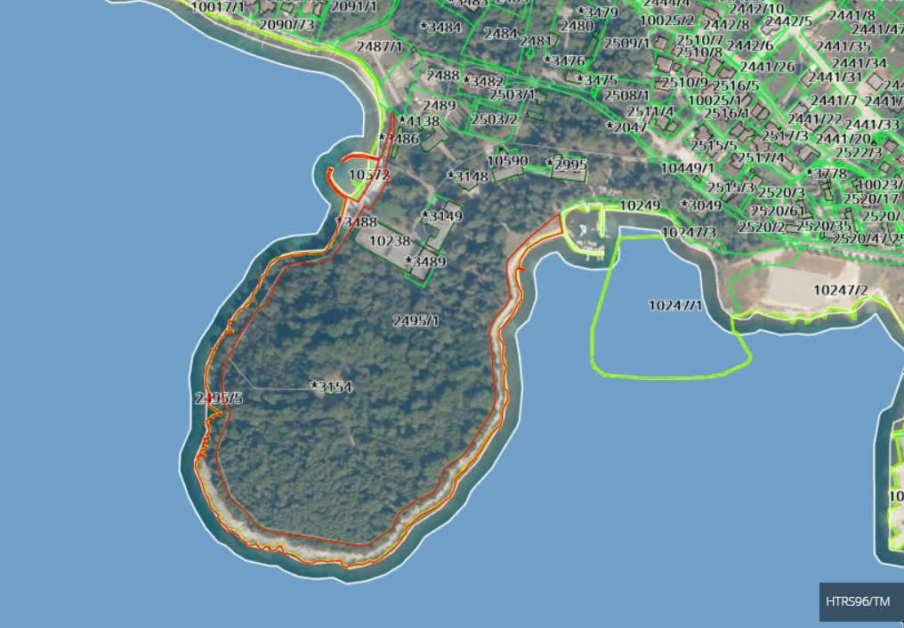Plaža uzduž ulice Colone nedaleko stare Barbarige (k.č. br. 6718/8 k.o. Bale površine 3258 m2. Cijena 8.600 eura).