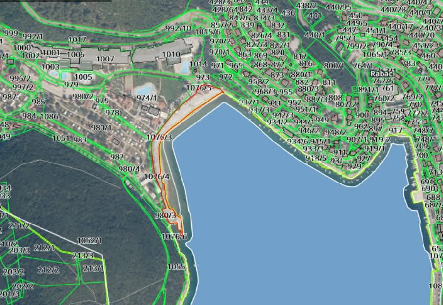 Plaža Maslinica u Rapcu (k.č.br. 1076/3 k.o. Rabac površine 7700 m2. Cijena 16.000)