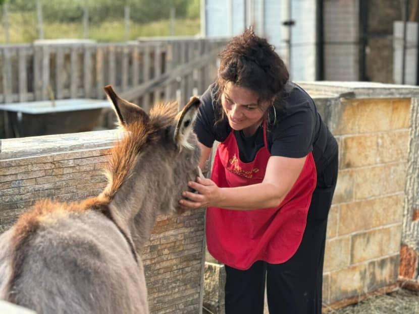 Čim se zakorači na imanje, odmah se može vidjeti i čuti životinjsko društvo koje ga naseljava. Magarac Emil, kravice, tele, koke te psi i mačke, koji uvijek prate posjetitelje.