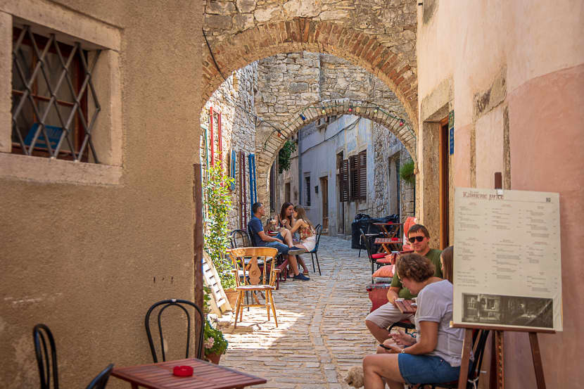 Pored Palače, u Jazz-konobi “Kamene priče” naručujem kavu a konobarica mi donosi i bucolaj, tradicionalni istarski kolač koji se priprema za Uskrs, ali i u drugim svečanim prilikama. Mekano i sočno slatko pecivo sa zanosnim mirisom koje se, kad se ispeče, umače u vruće mlijeko sa vanilijom kako bi dugo ostalo mekano. Sladim se bucolajima i gorčom kavom dok čitam da je ovdje Casanova, slavni zavodnik iz 18. stoljeća, imao jednu od ljubavnih avantura i to sa tadašnjom vlasnicom Palače Soardo-Bembo, u čijem dvorištu sjedimo.