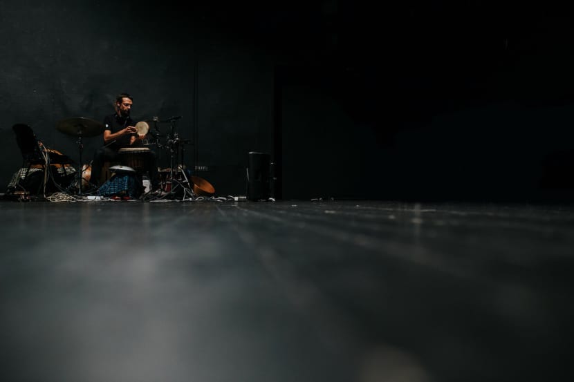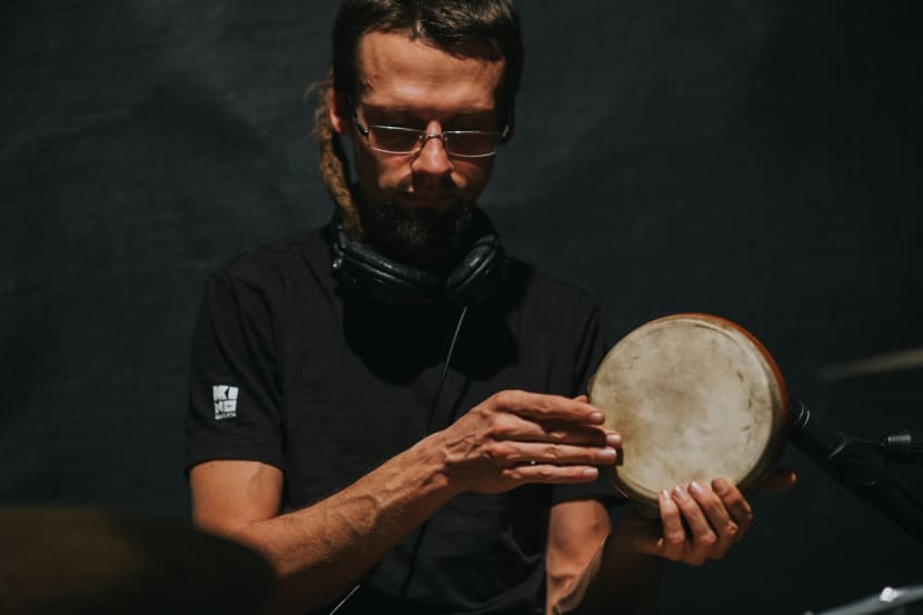Autor i izvođač istražuje zvukovne mogućnosti kanjire - malenog tradicijskog južnoindijskog bubnja, čija savitljiva gušterova opna, unatoč svega desetak centimetara promjera, može proizvesti zapanjujući raspon frekvencija i spektar zvukovnih boja. Navedene zvukovne mogućnosti autor dodatno proširuje amplificirajući udaraljku te šaljući njezin signal u lanac efekata koji postaje dio instrumentarija.