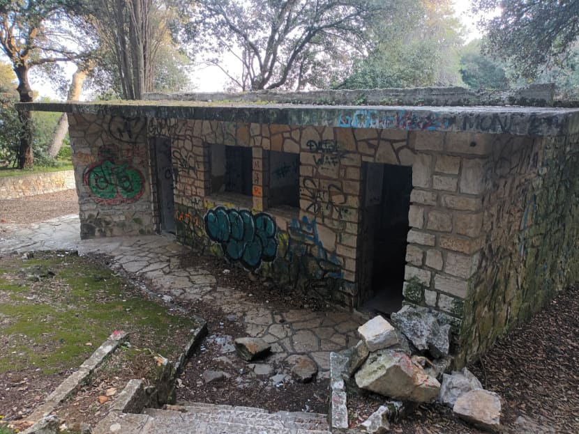 Na mjestu gdje je bila pizzeria i snack bar vidljivi su samo temelji, sve sliči na neko arheološko nalazište.