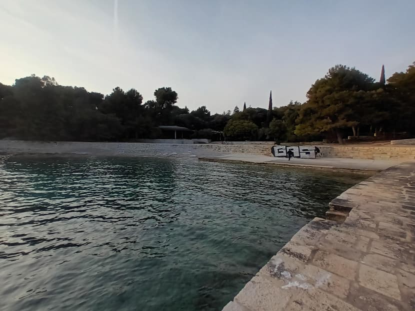 Ostaci centra su izuzetno zanimljivi, barem meni, neki kažu da nagrđuju prirodni ambijent, meni se čini da bi trebalo ih očuvati jer su oni, uz bok sa sitnim ostacima plemićke vizije luksuznog ljetovališta dokaz krivudavog rovinjskog hoda u građenju turističkog identiteta.