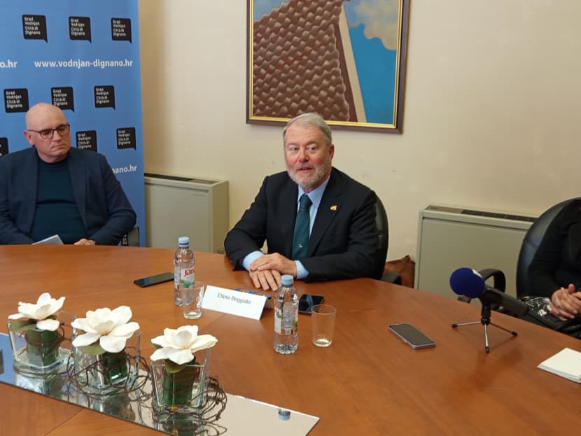 Na susretu u gradskoj palači u Vodnjanu Beggiata su dočekali i s njim razgovarali gradonačelnik Igor Orlić i zamjenica gradonačelnika predstavnica Talijana Manuela Geissa. Tu su bili i predsjednik Zajednice Talijana Vodnjana Maurizio Piccinelli, potpredsjednica ZT Galižane Diriana Delcaro Hrelja, predsjednik Vijeća talijanske manjine Istarske županije Ennio Forlani, predsjednik Vijeća talijanske manjine Grada Vodnjana Fulvio Delcaro te počasni konzul Italije Tiziano Sošić, u ime generalne konzulice Italije u Rijeci Ive Palmieri.