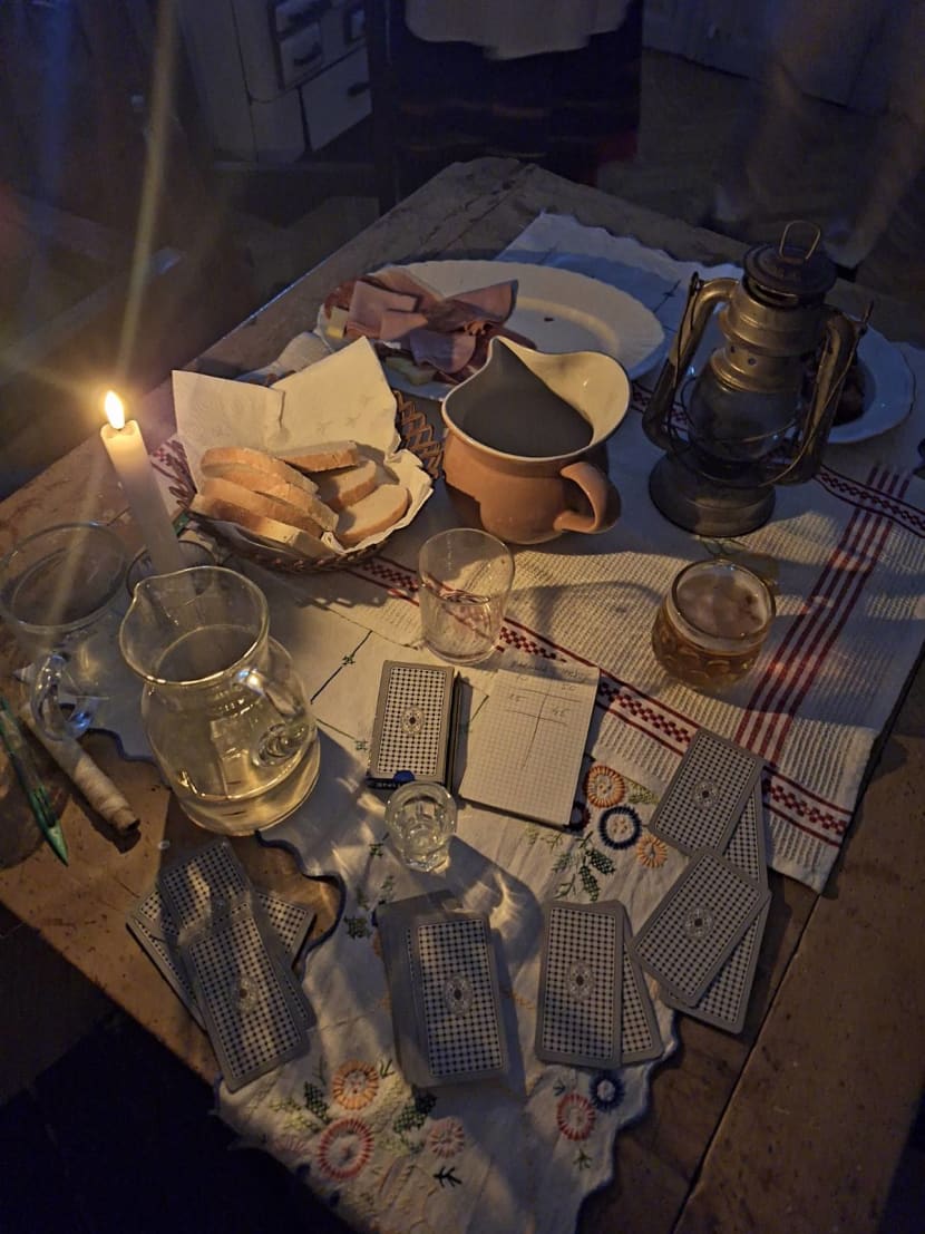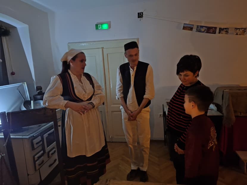 Kako se u prošlosti provodilo vrijeme za dugih zimskih večeri, dok još nije bilo električne energije, rasvjete, televizije, mobitela, interneta, pokazali su volonteri u ulogama ribara koji plete mreže, prijatelja koji igraju karte za stolom u kužini, majke koja obavlja kućanske poslove uz djecu koja pišu školsku zadaću te oca koji za svojim radnim stolom piše na starinskoj pisaćoj mašini.