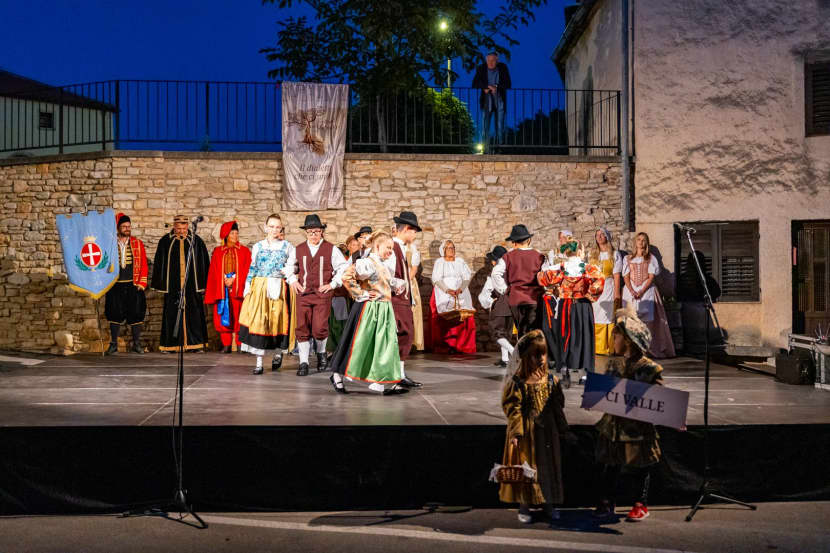 Nakon tradicionalne povorke tih skupina, uz glazbenu pratnju Limene glazbe Rovinj, na otvorenoj pozornici uz južnu stranu crkve nastupile su folklorne skupine Zajednica Talijana Šišan, Galižana, Vodnjan i Bale te KUD-a „Marco Garbin” iz Rovinja, koje su izvele tipične plesove poput vilote, furlane, mantignade, dampaséa i boemina te tradicijske pjesme kao što su rovinjske bitinade.