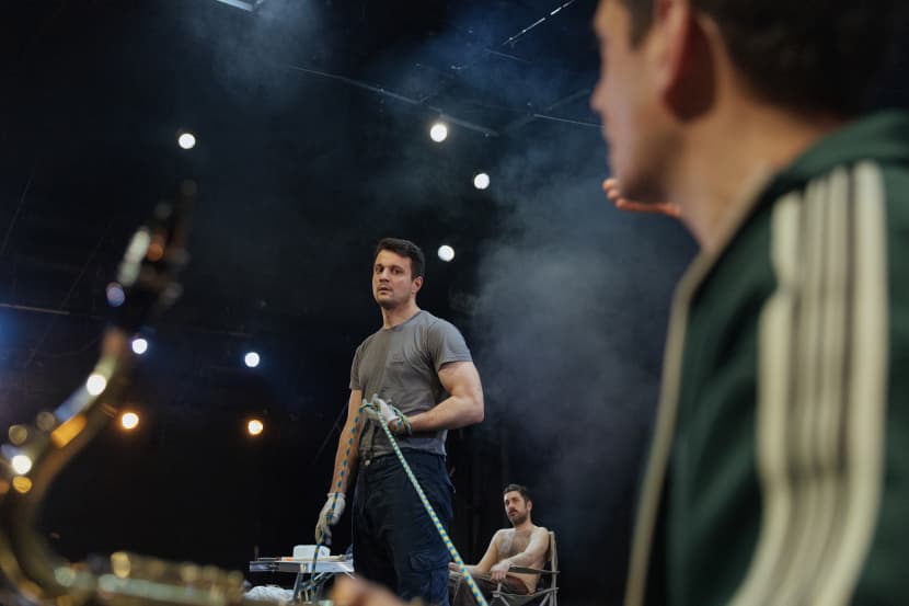 Predstava je i glazbeni događaj koji osim skladatelja Adžića, na samoj sceni kreiraju glumci - Josip Stapić na gitari te Alban Ukaj na saksofonu. Nije lako svirati uvjerljivo u tako fizički zahtjevnoj predstavi.