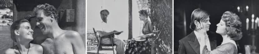 (Privatna foto arhiva: Neva Rošić i Tonko Lonza 1956.; s Brankom Gavellom na Dubrovačkim ljetnim igrama 1958. tijekom probi za ‘Tirenu’; kao barunica Castelli u HNK u Zagrebu 1974.)