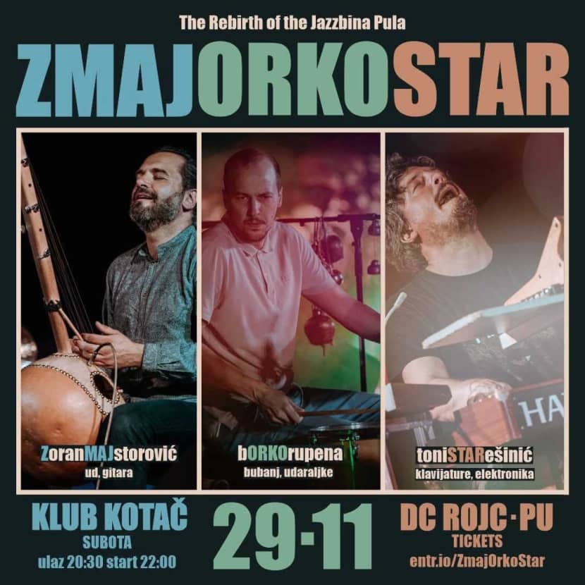 Jazzbina Pula zatvara ovogodišnji međunarodni koncertni ciklus, u subotu, 29. studenog, izvanserijskim trijom ZMAJ ORKO STAR, kojeg čine vrhunski i nagrađivani hrvatski glazbenici Zoran Majstorović, Borko Rupena i Toni Starešinić.