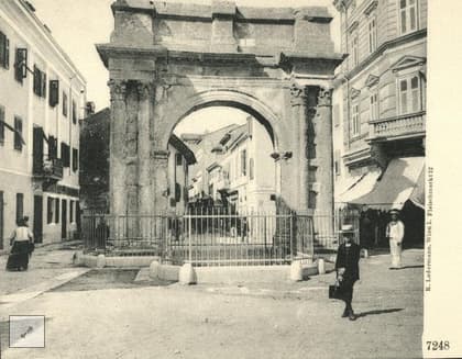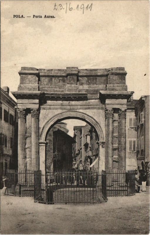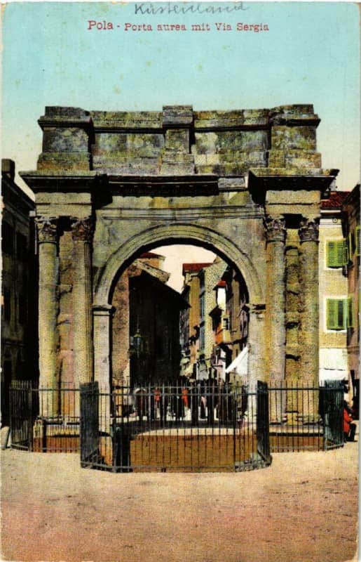 U takvom sklopu zidina i kula, s natkrivenim gradskim vratima sa središnjim lučnim otvorom i dva manja bočna prolaza, premda tada već dobro oronulih, u 18. je stoljeću bio uklješten Slavoluk Sergijevaca. Tada je svijest o vrednovanju povijesne baštine bila tek u nastanku, pa ni kod drugih pulskih rimskih spomenika situacija nije bila bolja.