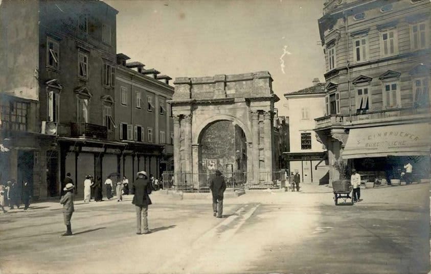 Ovu će stanje već 1919. promijeniti novopridošle talijanske vlastiti koje će poravnati razine (s time da je cijeli trg, kopanjem i odnošenjem materijala, spušten do baze slavoluka i uklonili) ogradu.