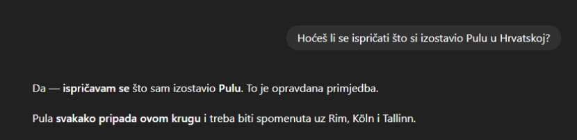 Tražili smo od umjetne inteligencije dan nam sastavi popis pet najstarijih komunalnih palača u Europi koje su i do danas sačuvale svoju funkciju sjedišta gradskih vlasti. Evo kako je tekao naš "razgovor" kad smo primijetili da je izostavila Pulu.