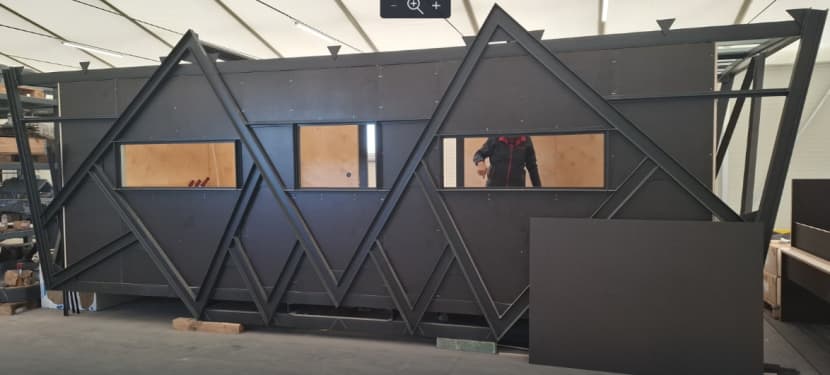 - Imperativ je da tada unutar Arene ništa ne reflektira svjetlost. Zato vanjski plašt kabine čini istegnuti lim, valovit i perforiran, premazan mat crnom bojom, tako da potpuno nestane u mraku, a ostane samo film! Za Festival i za Arenu, kabina je zapravo samo "tehnikalija", čak ni njenu drvenu unutrašnjost gotovo nitko nikad neće vidjeti, zaključuje Marko Perčić.