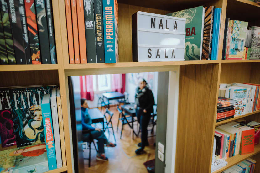 Iz želje za mjestom koje će pružiti isti osjećaj sigurnosti i spontanosti, u okviru Kluba&knjižare ponovno se stvara upravo Mala sala. Nekoliko stolova, cugica (za donaciju „daj šta daš“), dobra mjuza, knjige koje nisu samo scenografija, društvene igre nadohvat ruke, pogled iznad krošanja.