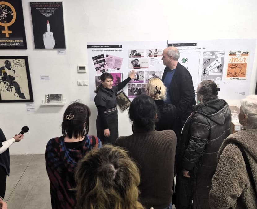 Nakon službenog otvorenja, autori izložbe upriličili su stručno vodstvo kroz postav, tijekom kojeg su posjetiteljima detaljnije predstavili koncepciju izložbe, proces istraživanja i kriterije odabira radova. Kroz tematske cjeline i kronološki okvir, publika je imala priliku iz prve ruke čuti kontekst nastanka pojedinih plakata, kampanja i vizualnih intervencija, od ranih feminističkih inicijativa s kraja 1980-ih do suvremenih dizajnerskih praksi. Vodstvo je otvorilo prostor i za pitanja te razmjenu iskustava, čime je dodatno naglašena važnost dijaloga o ulozi dizajna u oblikovanju javnog prostora i društvenih promjena.